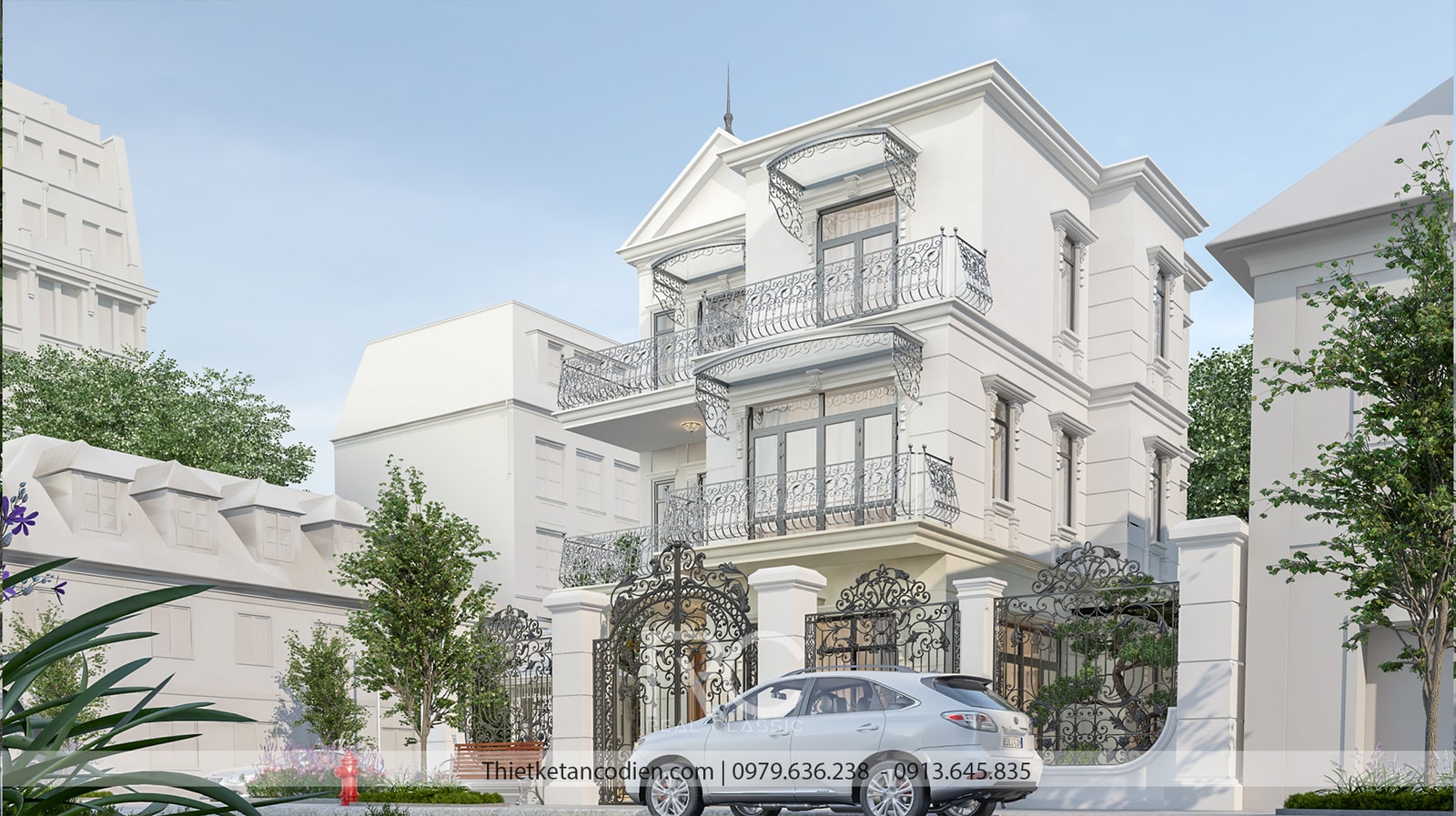- Phong cách thiết kế: Đảm bảo thể hiện rõ nét kiến trúc tân cổ điển với các chi tiết phào chỉ tinh xảo, hệ thống cột trụ, và những yếu tố trang trí đặc trưng.