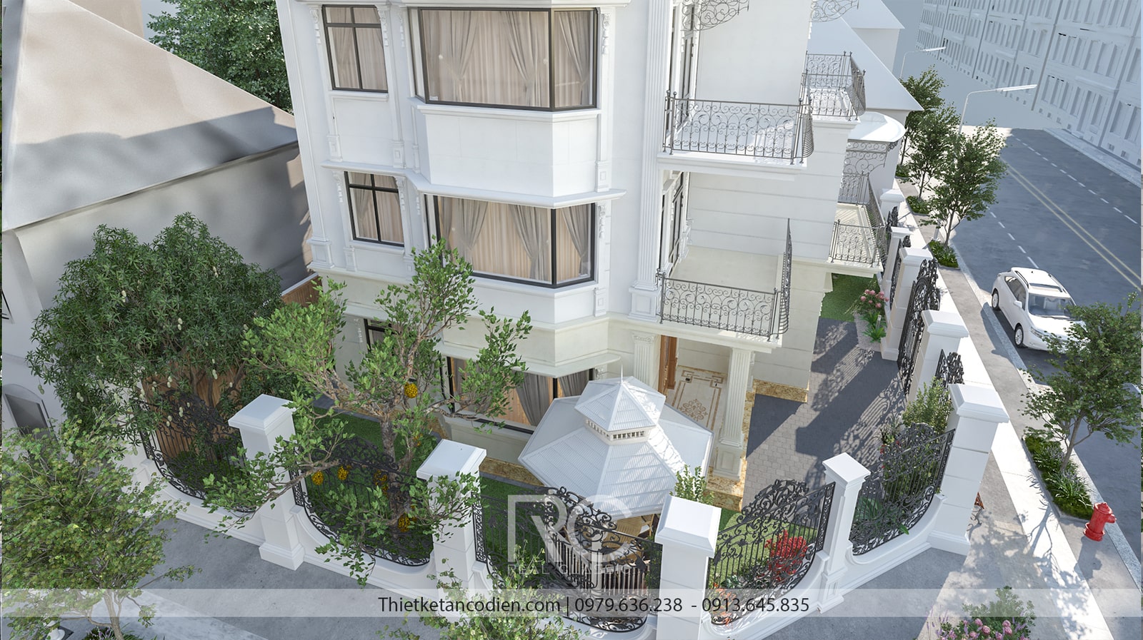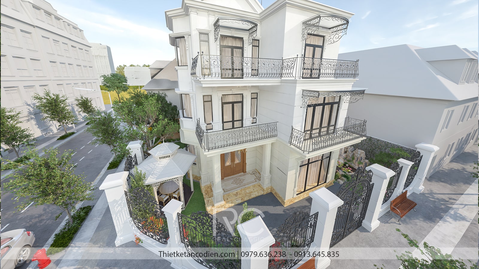 Phối cảnh kiến trúc của biệt thự 3 tầng tân cổ điển