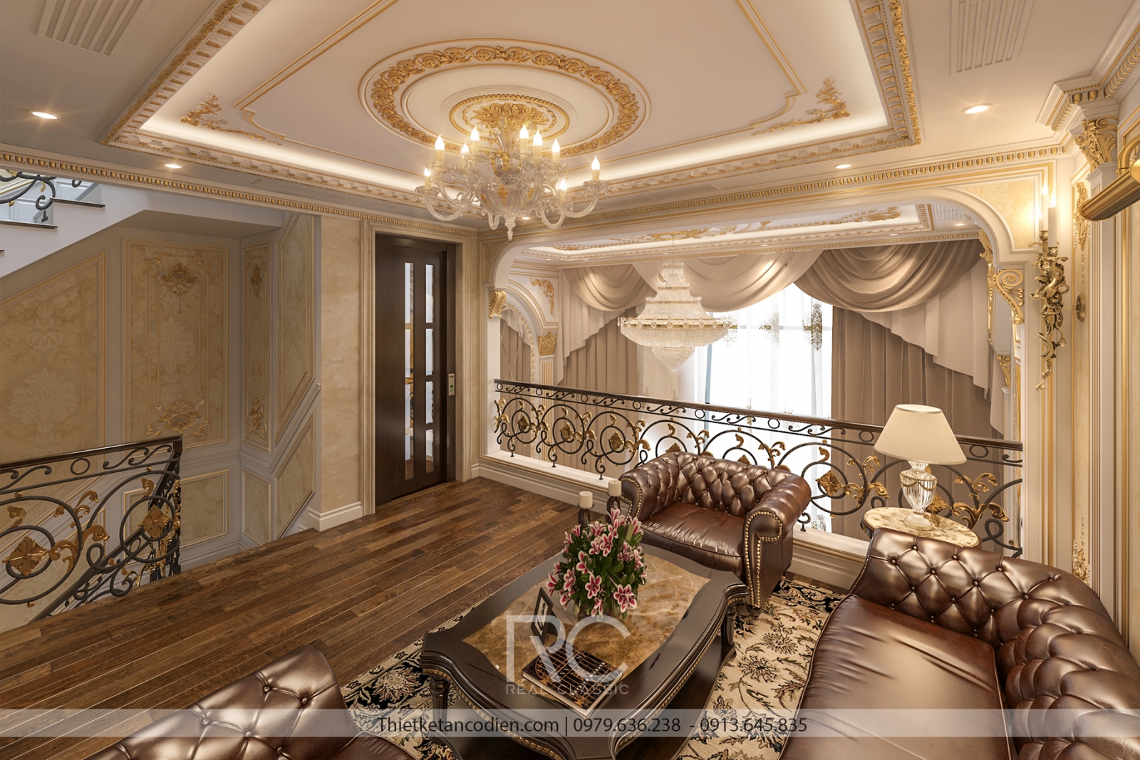 Không gian tiếp khách sang trọng tại tầng lửng vô cùng ấn tượng
