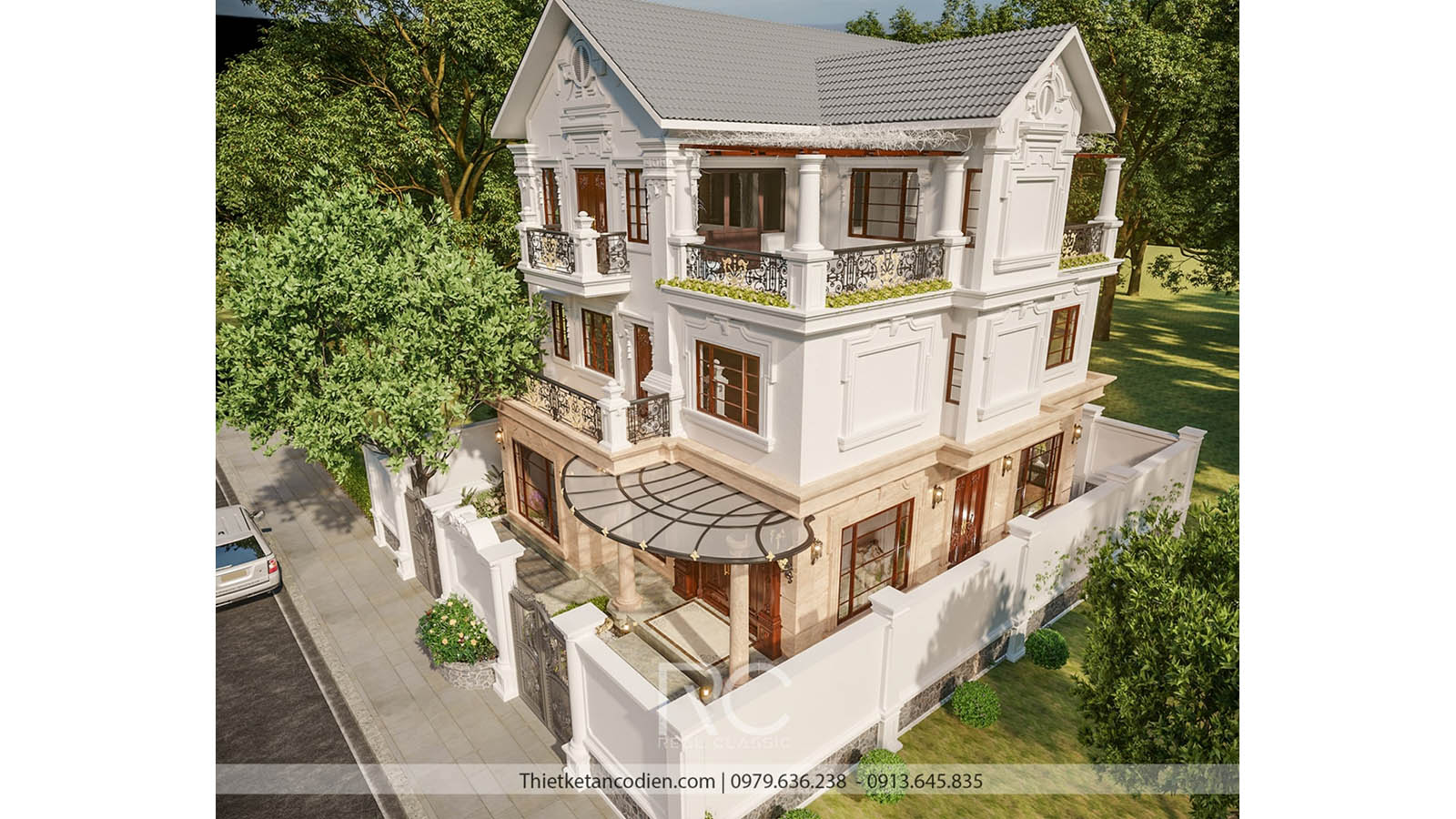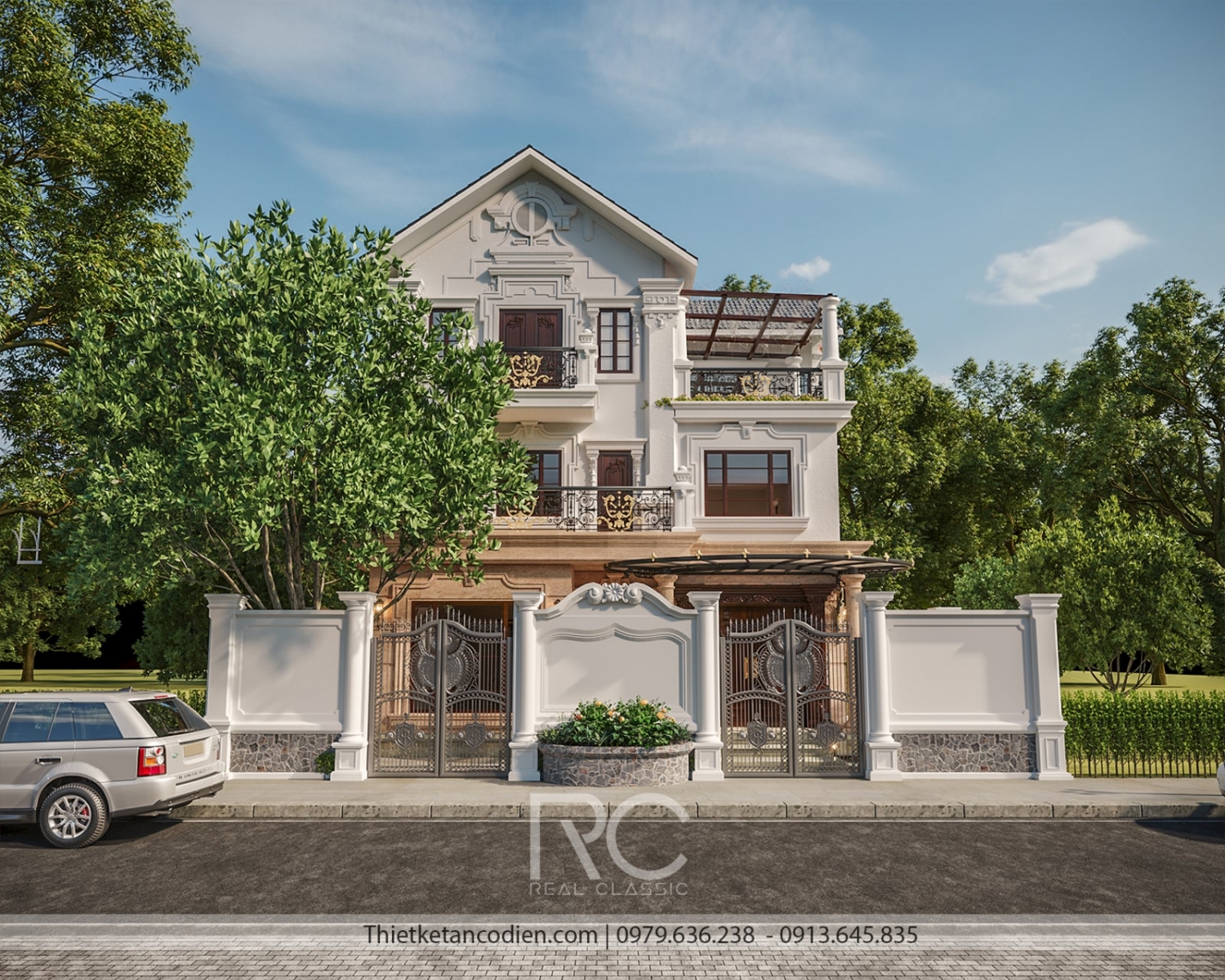 Công trình này được thiết kế và hoàn thiện bởi đội ngũ Real Classic. Nhờ quy mô 3 tần rộng rãi, cùng đặc trưng phong cách tân cổ điển chủ đạo, mà thiết kế này mang lại vẻ đẹp quy mô, hoành tráng. Các chi tiết phào chỉ trang trí, vật liệu được sự dụng bền bỉ, chắc chắn.... đảm bảo được hiệu quả vượt trội cho khách hàng. Một số đặc trưng về mặt kiến trúc của ngôi nhà được thể hiện như sau: