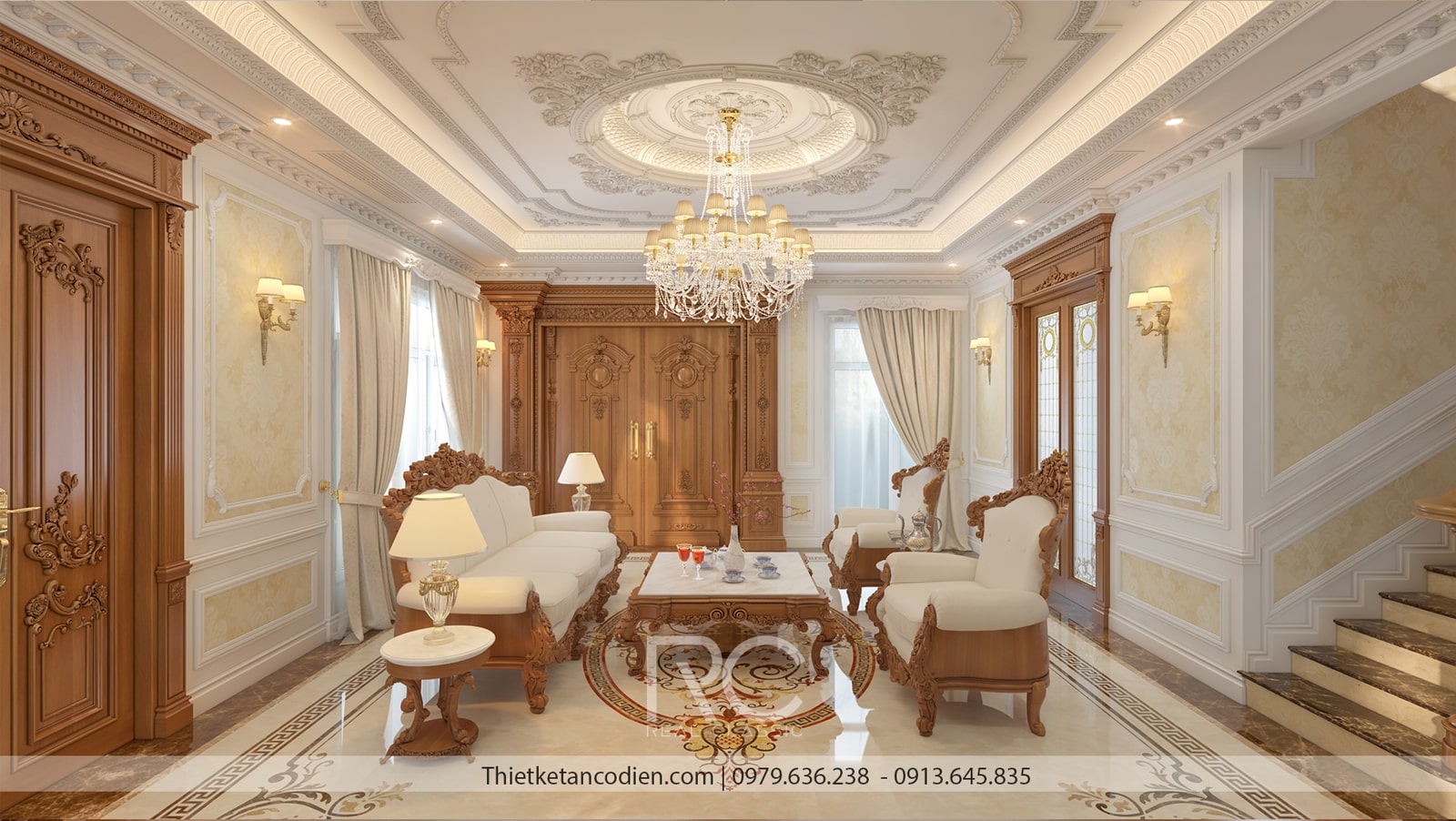 Nội thất của phòng khách sang trọng và xa hoa vô cùng