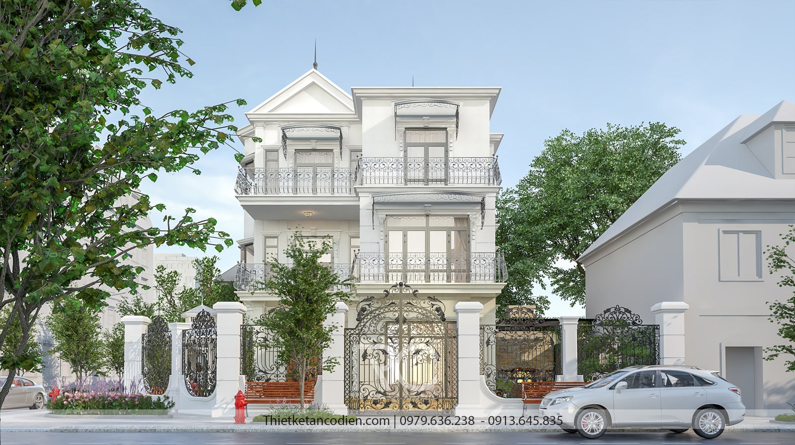 Quy mô xây dựng rộng rãi của biệt thự 3 tầng tân cổ điển đẹp